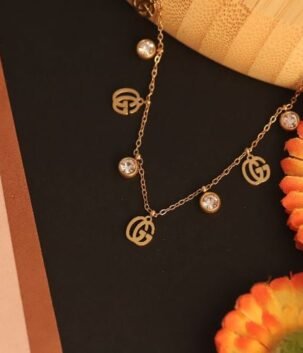 Stylish Gold-Tone Charm Necklace with Crystal Elegance