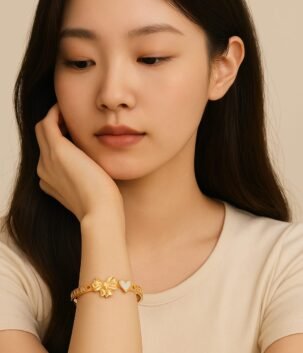 Elegant Gold-Tone Designer Bangle with Pearl & Crystal Accents