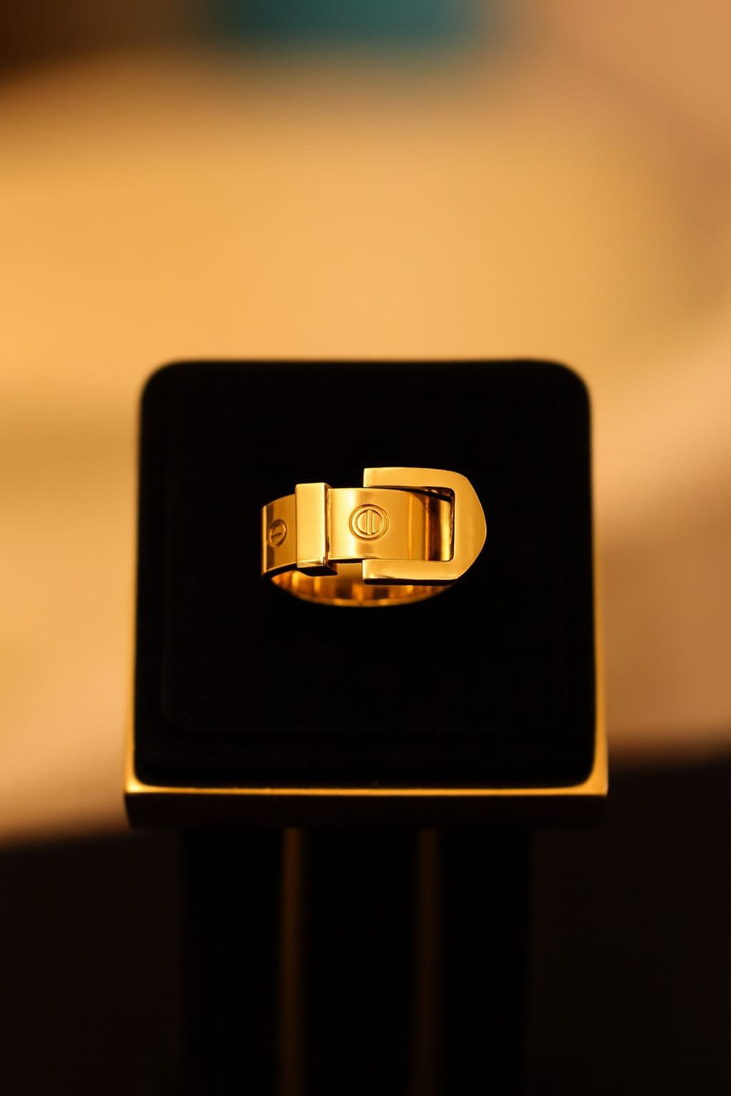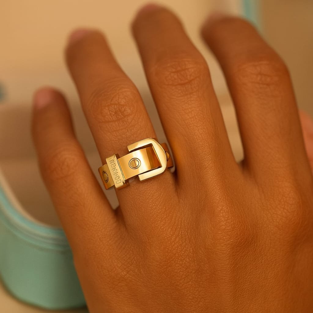 Indulge in the epitome of sophistication with our statement gold ring featuring a striking buckle-style locking design. Perfectly crafted to blend luxury with boldness, this unique piece is more than just jewelry – it’s an expression of confidence and individuality. Whether you’re looking to elevate your everyday attire or accessorize for a special occasion, this ring is sure to catch eyes and start conversations.