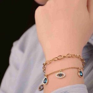 The Trendy Dual-Layer Chain Bracelet with Evil Eye charm is the perfect accessory to add a touch of elegance to your modern wardrobe. Designed for those who appreciate refined yet versatile jewelry, this bracelet blends contemporary style with meaningful symbolism. Whether dressing up for a formal occasion or adding a subtle accent to your everyday wear, this bracelet is the perfect choice for effortless sophistication.