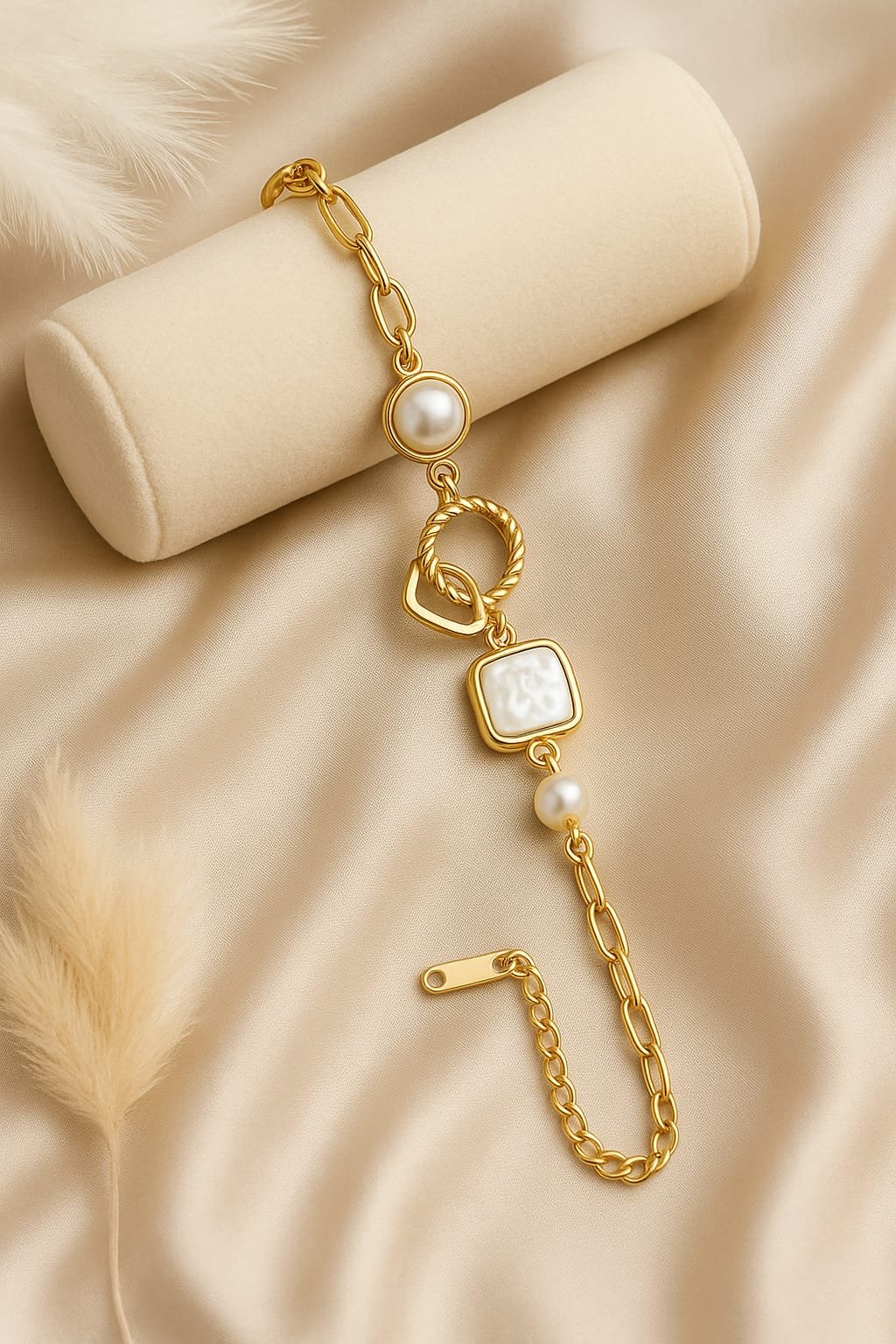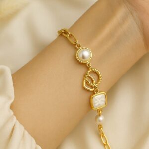 Be the first to review “Elegant Pearl & Geometric Link Bracelet”