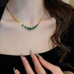 Bring timeless charm to your jewellery collection with the Emerald Elegance Gold-Plated Necklace. Designed with precision, this exquisite piece features a sleek gold-plated chain adorned with seven radiant emerald-green square-cut stones that sparkle with every movement. Perfectly balanced between modern design and traditional grace, the necklace is lightweight yet durable, making it comfortable to wear throughout the day. Whether you’re dressing up for a festive celebration, a wedding occasion, or simply want to elevate your evening attire, this necklace adds a vibrant pop of colour and sophistication. Crafted for women who appreciate elegance, this jewellery piece makes for a thoughtful gift or a personal indulgence. Pair it with ethnic outfits or contemporary western wear to leave a lasting impression.