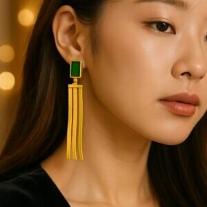 Make a statement that captures attention every time you step out. Our Emerald Tassel Earrings combine bold design with a touch of elegance, ensuring you’re always in the spotlight. The vibrant green stud of the earrings exudes luxury and pairs seamlessly with the flowing golden tassels to create a look that’s both dramatic and refined. Whether you’re at an evening gala or a casual brunch, these earrings promise to elevate your style effortlessly.
