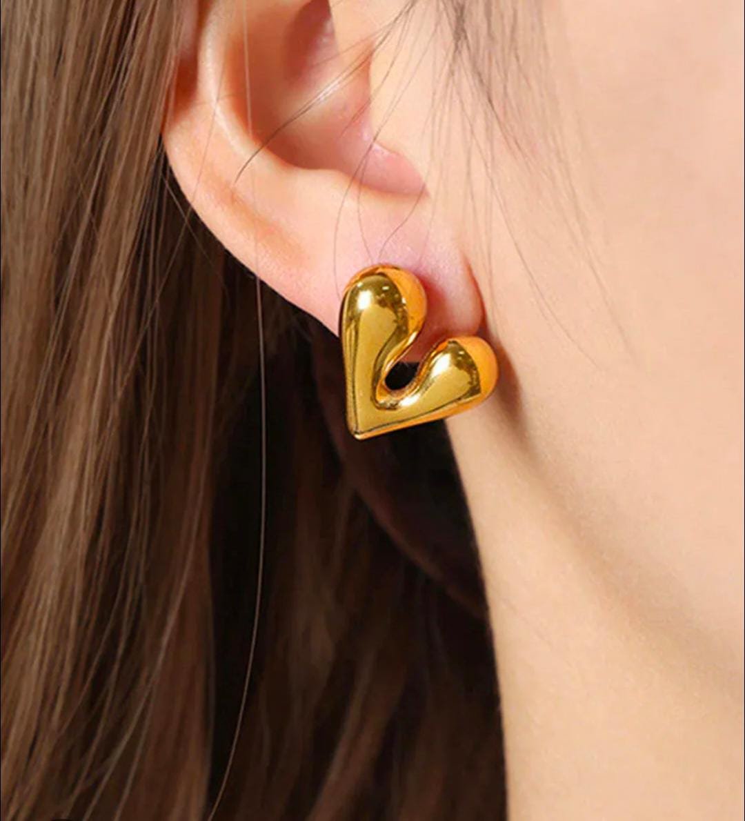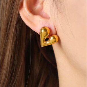 Embrace elegance with our Golden Heart Statement Studs, a timeless piece designed to add warmth and charm to your everyday style. Crafted with premium-quality metal and finished in a radiant 18K gold plating, these earrings feature a bold heart silhouette that symbolizes love, confidence, and sophistication. The smooth, glossy finish enhances their luxurious appeal, making them versatile enough for both casual outings and evening events. Lightweight and anti-tarnish, these studs are perfect for long-lasting wear, blending durability with comfort. Pair them with western or ethnic outfits to effortlessly elevate your look.
