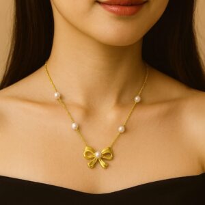 Crafted from high-quality, skin-safe alloy and polished with a lasting gold-tone finish, the piece is both lightweight and durable. The pearls and bow design lend it a youthful and elegant appeal, perfect for styling with sarees, kurtis, or Indo-western outfits.