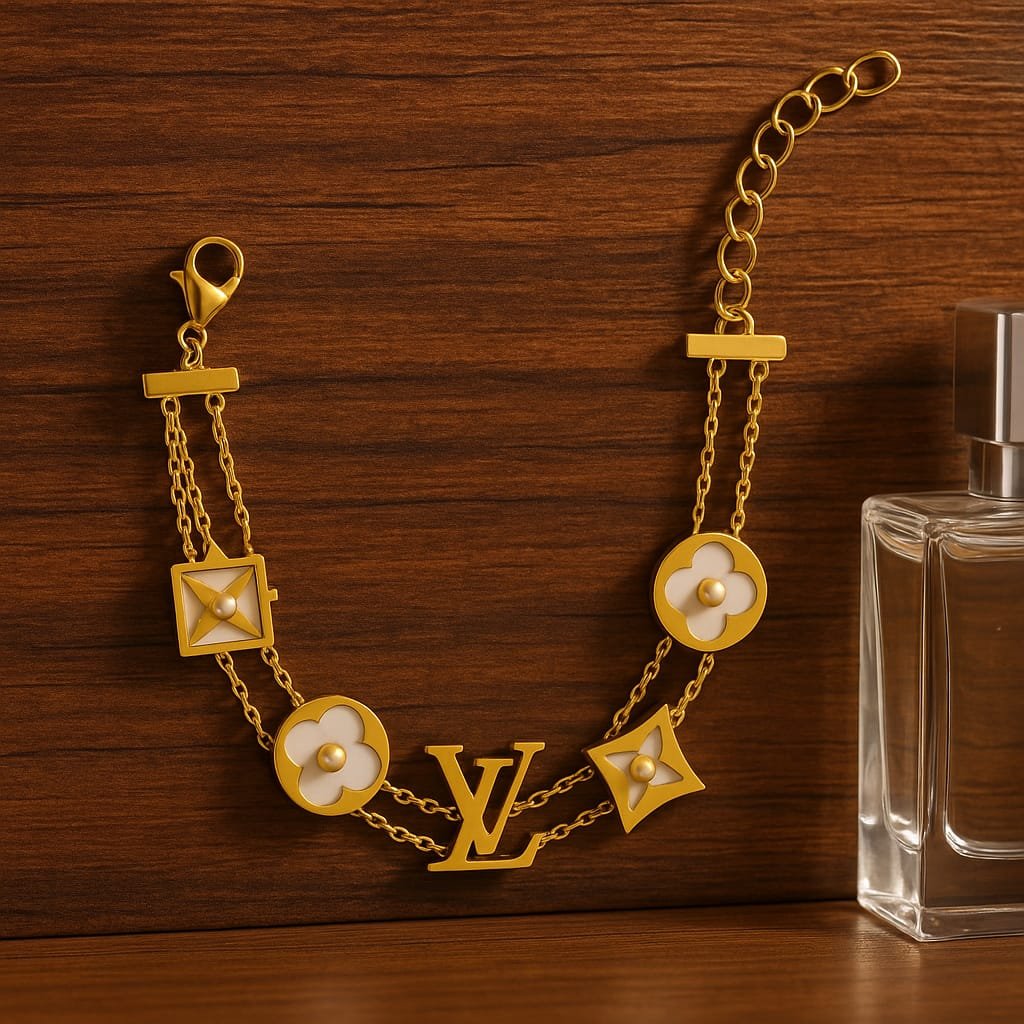 Channel the timeless sophistication of Paris with this exquisite LV-inspired charm bracelet. Crafted to blend elegance and luxury, it showcases iconic floral motifs and signature initials that echo the essence of high-end fashion. Whether you’re dressing up for a formal event or adding flair to your everyday ensemble, this bracelet is a statement piece that enhances any wardrobe.