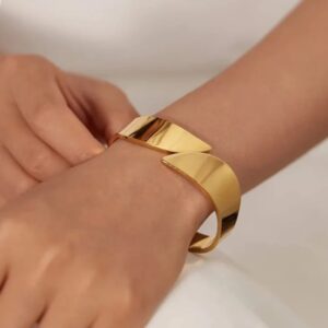 Sleek. Sculptural. Striking. The Eclipse Fold-Over Cuff is for those who dare to wear bold, artistic silhouettes. With its asymmetric fold-over tips and high-shine finish, this bracelet is a nod to architectural elegance and futuristic design. It hugs the wrist in an open cuff style, offering both structure and freedom. The clean lines and smooth curves make it a favorite for minimalists and maximalists alike. Plated in brilliant gold and crafted from durable, skin-safe metal, this bracelet turns simplicity into sophistication. Ideal for high-fashion looks, editorial styling, or turning everyday outfits into runway moments.