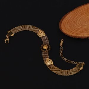 Crafted from high-quality materials, the lion-head mesh bracelet ensures durability without compromising on aesthetic value. The multi-strand gold chains deliver a refined shine, creating an eye-catching piece that stands the test of time. Whether you’re attending a casual gathering or a formal event, this bracelet easily transitions to fit any occasion. Built to retain its sleek finish, it’s a must-have for those who demand quality and style.