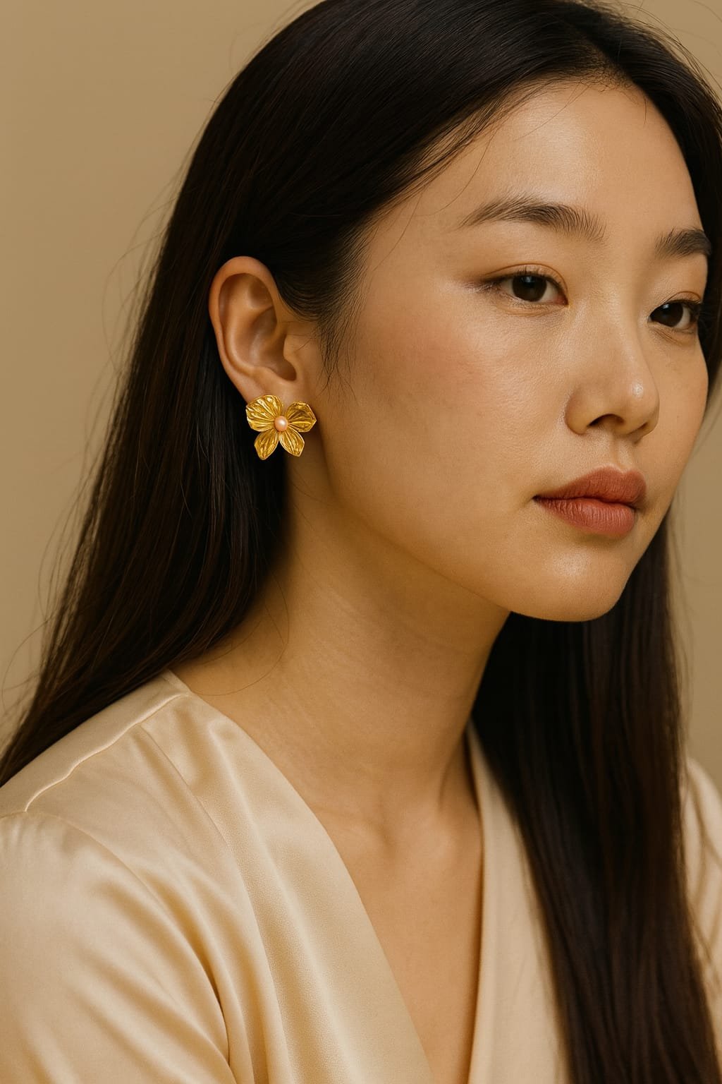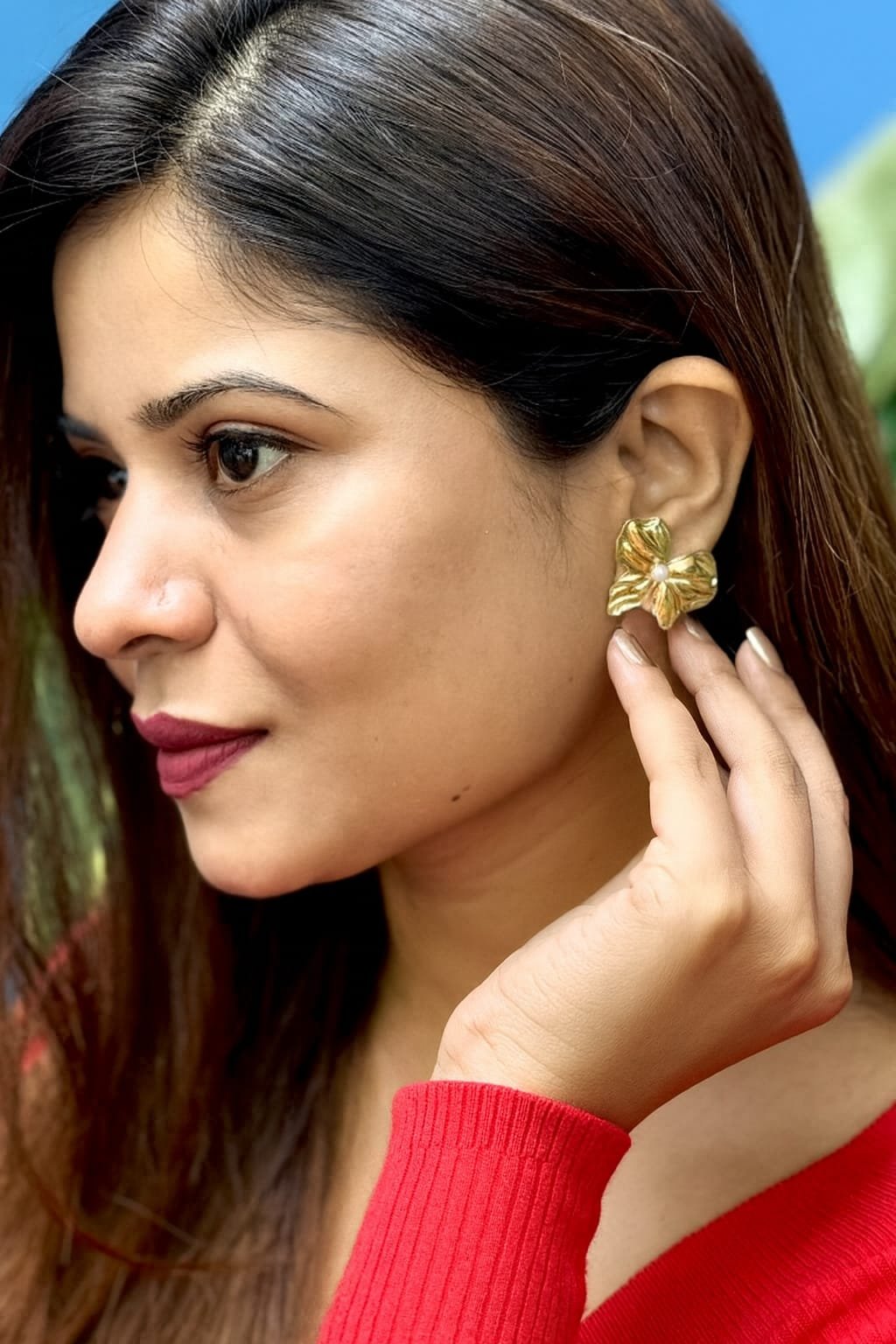 Lightweight and skin-friendly, these studs are perfect for daily wear, office styling, brunch outfits, weddings, and gifting. Their graceful satin-finish texture and modern floral silhouette make them a timeless addition to your jewellery collection.