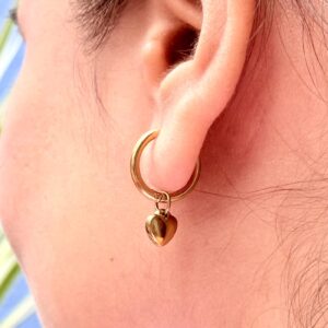 Introducing the Sioura Gold Heart Huggie Hoops, a timeless blend of elegance and Korean-inspired minimal beauty. These hoops feature a sleek, high-polish finish and a delicate heart charm that adds the perfect touch of romance to any look. Crafted in premium stainless steel with 18K gold plating, they are waterproof, sweat-proof, anti-tarnish, and perfect for all-day comfort.