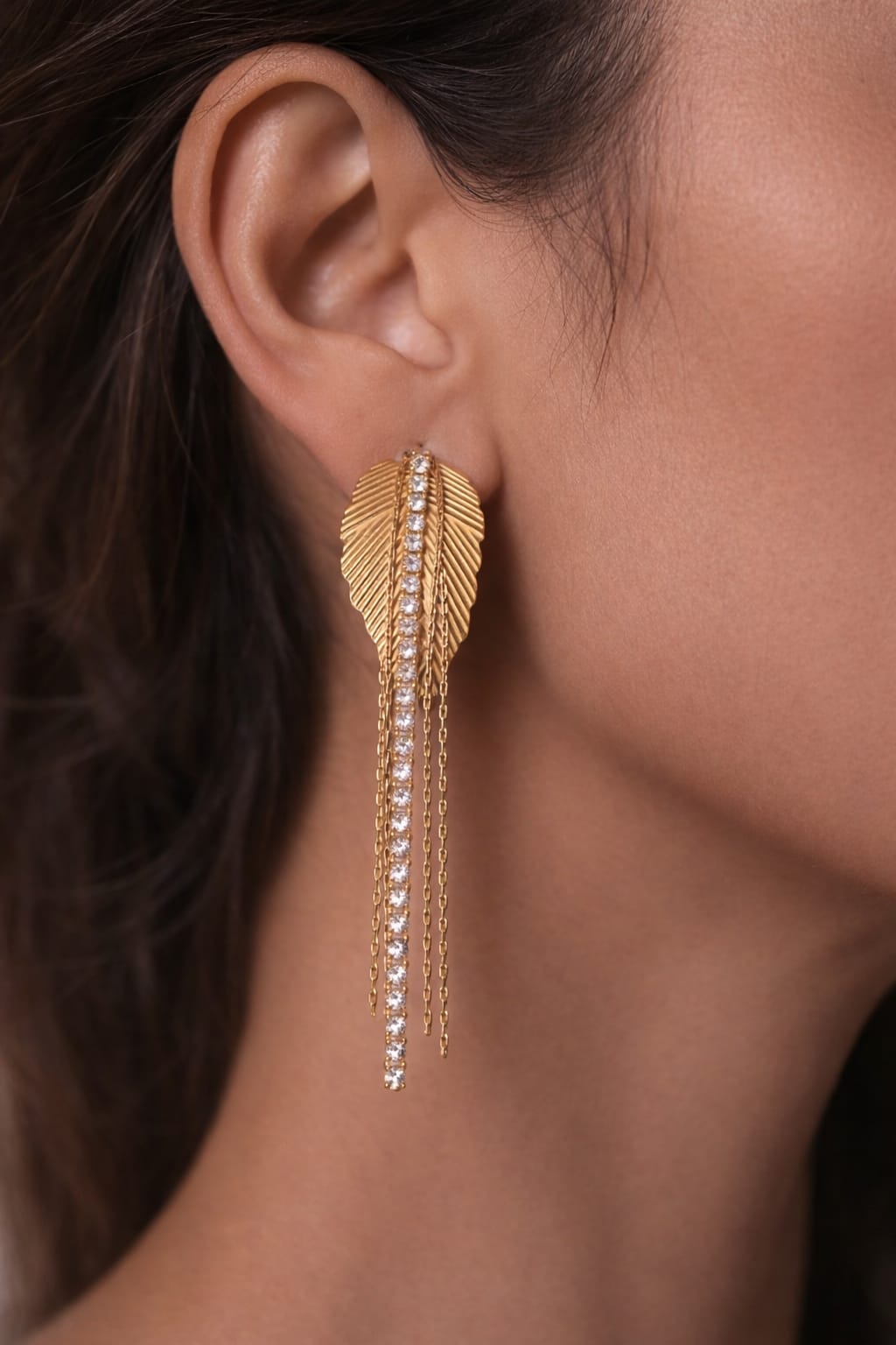 The dual hanging chains add graceful movement, creating a luxurious, soft shimmer with every step. Designed for modern women who love chic Korean-inspired fashion, these earrings are lightweight, anti-tarnish, and perfect for both festive occasions and everyday glam.