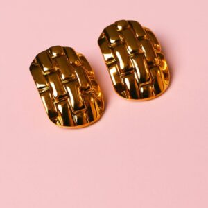 Introducing Imperial Woven Glow Studs, a masterpiece crafted for women who adore bold, structured elegance. These statement studs feature a luxurious basket-weave texture that reflects light beautifully, creating a rich golden shine from every angle. Made with premium stainless steel and high-quality gold plating, they are anti-tarnish, waterproof, hypoallergenic, and perfect for all-day comfort.