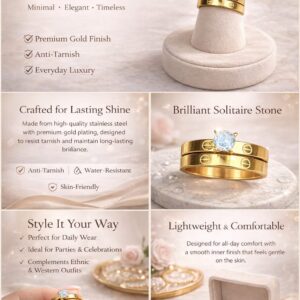 Crafted from high-quality stainless steel with long-lasting premium gold plating, this ring is anti-tarnish, water-resistant, and skin-friendly, making it ideal for daily wear as well as special occasions. Inspired by Korean minimal luxury aesthetics, it pairs beautifully with ethnic, western, and fusion outfits.